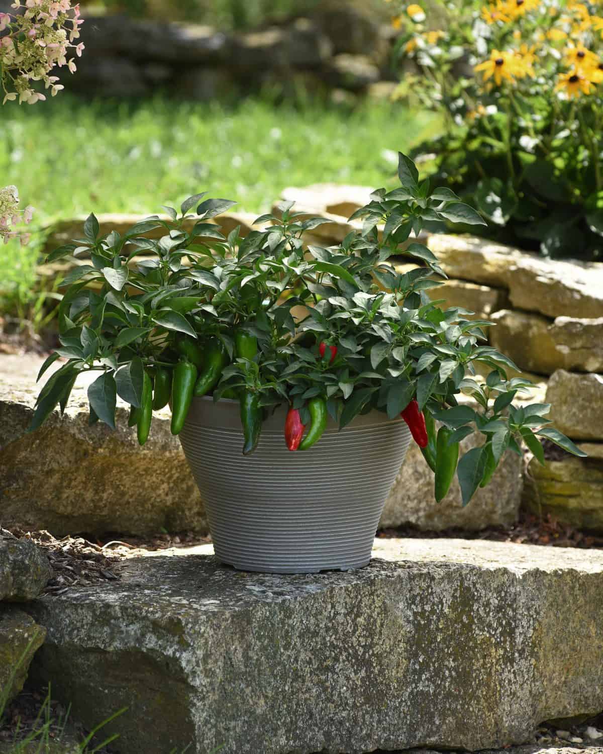 Nouveau piment jalapeño amusant, au port compact, parfait pour la culture en contenant ou panier suspendu. Le plant produit une abondance de petits piments verts au goût classique piquant. En laissant les fruits sur le plant quelques semaines de plus, ils tourneront au rouge sucré et épicé. Pot-a-Peno est le seul piment fort dont les fruits pendent sous le plant, facilitant la récolte sans endommager le plant ou en affecter la productivité.