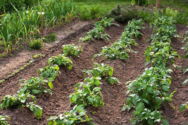 Culture de pommes de terre au jardin