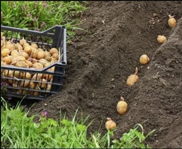 Remarque : habituellement on compte 12 tubercules par kilo. Cette quantité devrait suffire pour un rang de 5 à 7,5 mètres. 1 kilo de semences de pomme de terre (tubercules germés) permet de produire environ 25 K de pommes de terre.