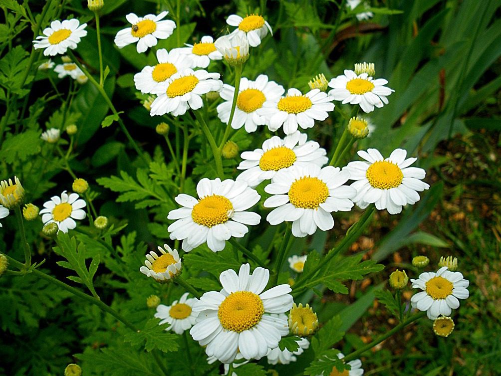 Common species: noble antemies, Roman chamomile, Matricaria. A daisy-like plant commonly used to make herbal infusion using dried flower heads and water. Also used as flavouring agent in food and beverages, mouthwash, soaps and cosmetics.